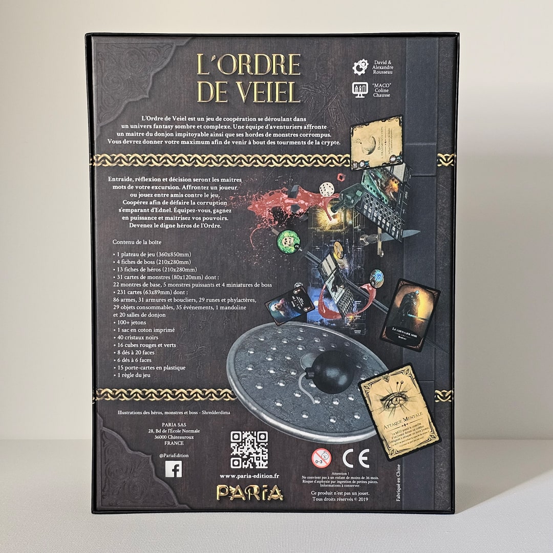 L’Ordre de Veiel est un jeu de coopération se déroulant dans un univers fantasy sombre et complexe. Prévu pour des parties de 1 à 7 joueurs durant 1h-1h30, une équipe d’aventuriers affronte un maître du donjon impitoyable ainsi que ses hordes de monstres corrompus. Vous devrez donner votre maximum afin de venir à bout des tourments de la crypte. Entraide, réflexion et décision seront les maîtres mots de votre excursion.