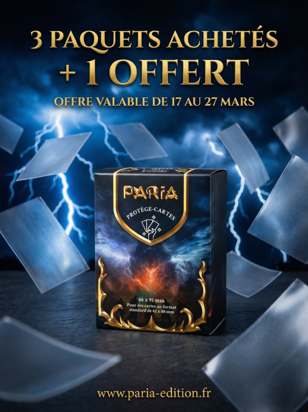![[Offre promo] Protèges-cartes mattes 66x91 mm (x200) pour nos jeux format standard (63x88mm)](https://paria-edition.fr/wp-content/uploads/2026/03/Pub_protege-cartes.webp)